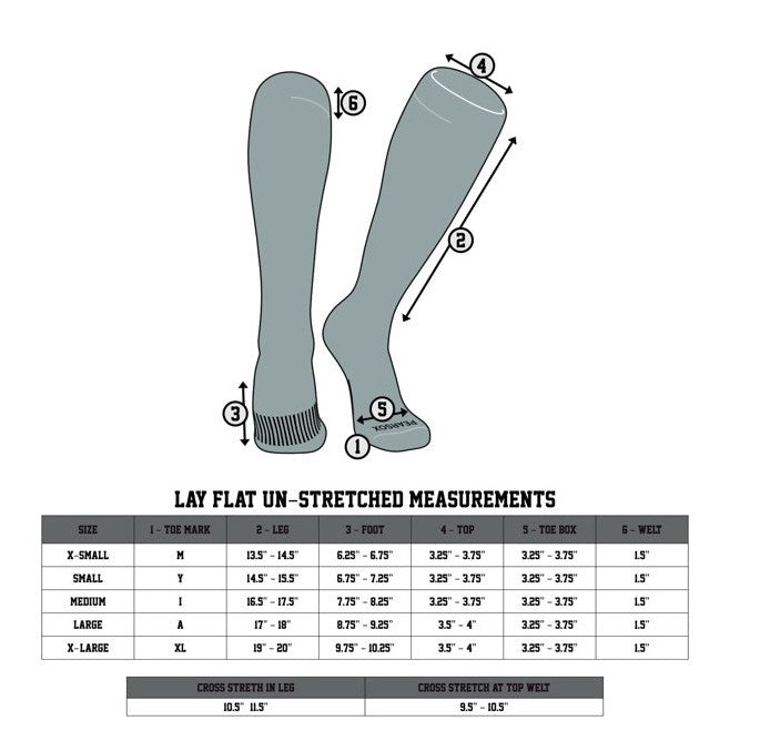 Choose a size that best fits the needs of your team and organization. Our socks are made in the USA with highest quality materials to ensure perfect fit.