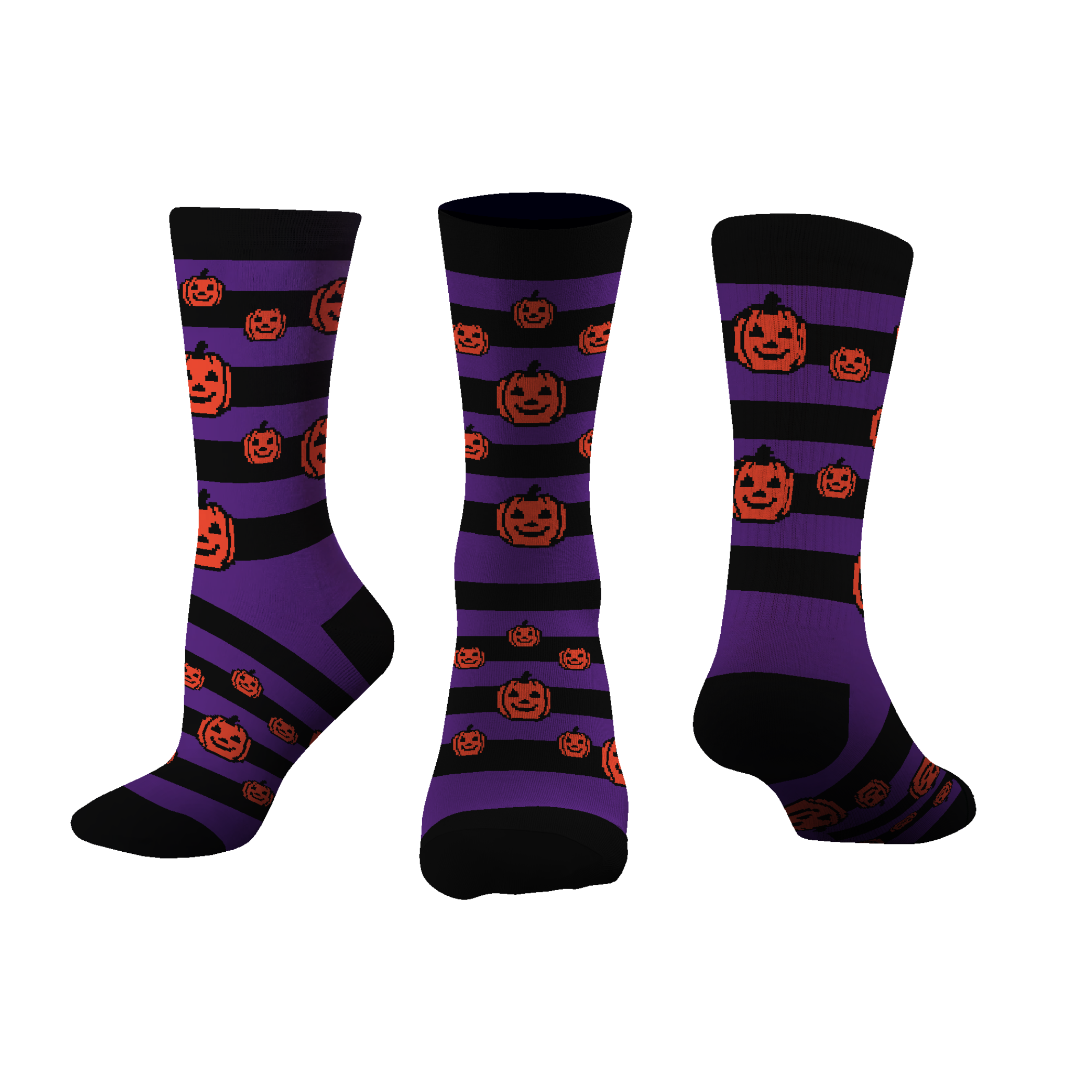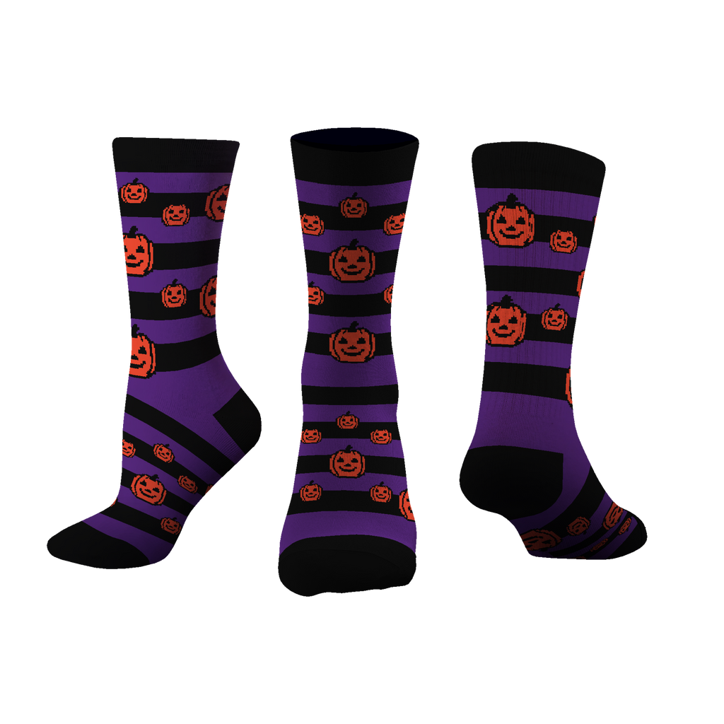 Limited Edition: Don’t miss out on these exclusive custom jack-o'-lantern stripe socks. They’re here to make your Halloween extra special, but like a ghost in the night, they won’t stick around forever!