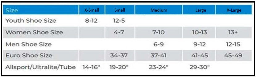Ages 12-15 years: Medium (Stirrup measures approx. 17", laying flat)